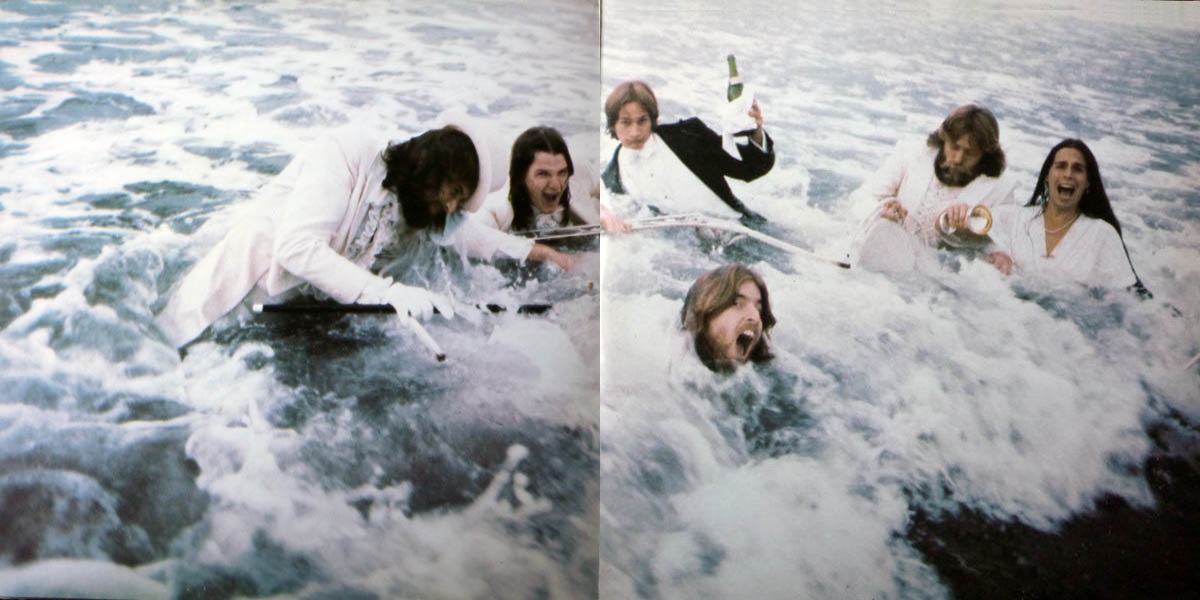 Fun facts: The album’s memorable cover is an illustration of the title track. On the front cover the band members appear to be enjoying their wine and cheese in shallow ocean water. When you open the gatefold cover, you find a photo of the band being wiped out by ocean waves – tables, food and all.