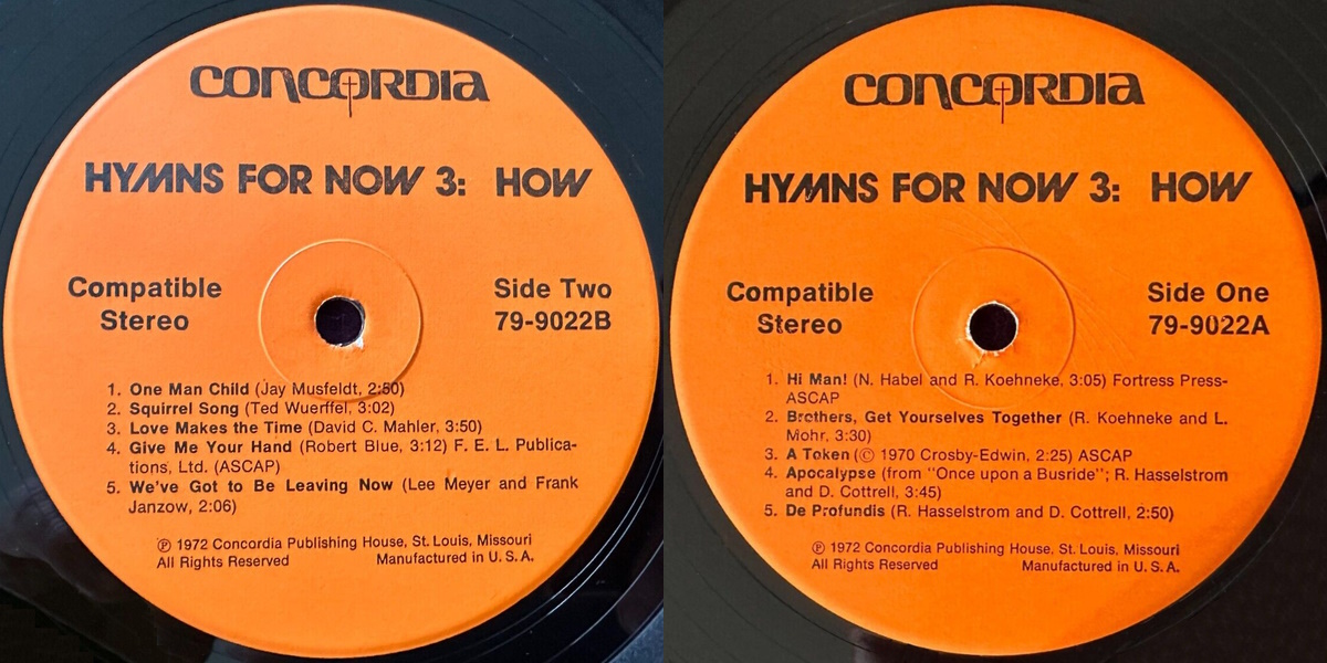 The Coalition - Hymns For Now 3: How (Concordia 1972) LP labels, Side2 and Side1
