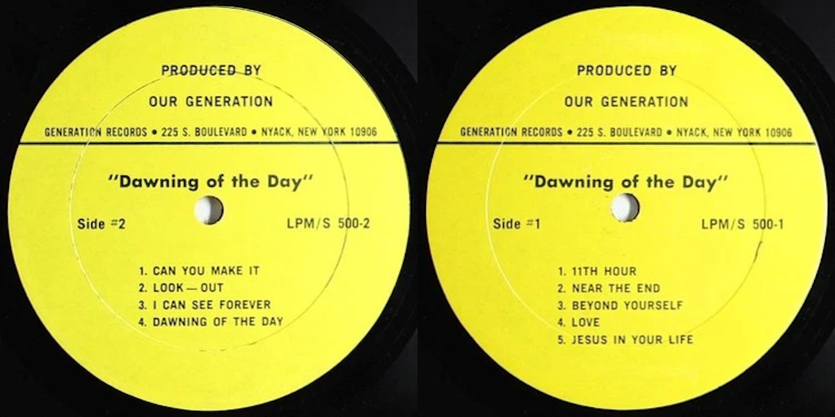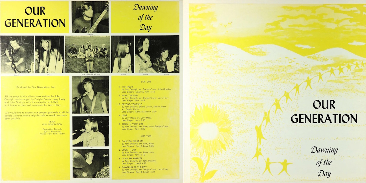 Dawning of the Day is the debut album by the American garage rock band Our Generation, independently released on the band’s own label Generation Records in 1971. The album was self-produced by the band. All songs written by John Oostdyk and arranged by Dwight Craver, Larry Hoey, and Oostdyk, except “Love” written by Hoey.
