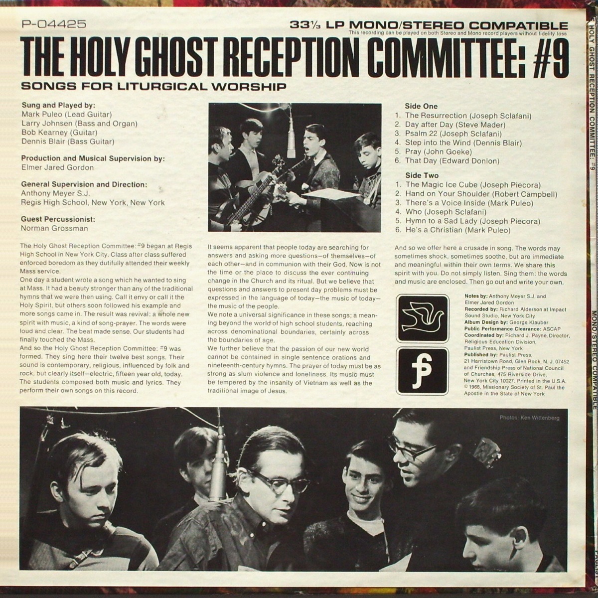 The Holy Ghost Reception Committee: #9 - Songs For Liturgical Worship (Paulist Press 1968) LP Back and Front Cover Art