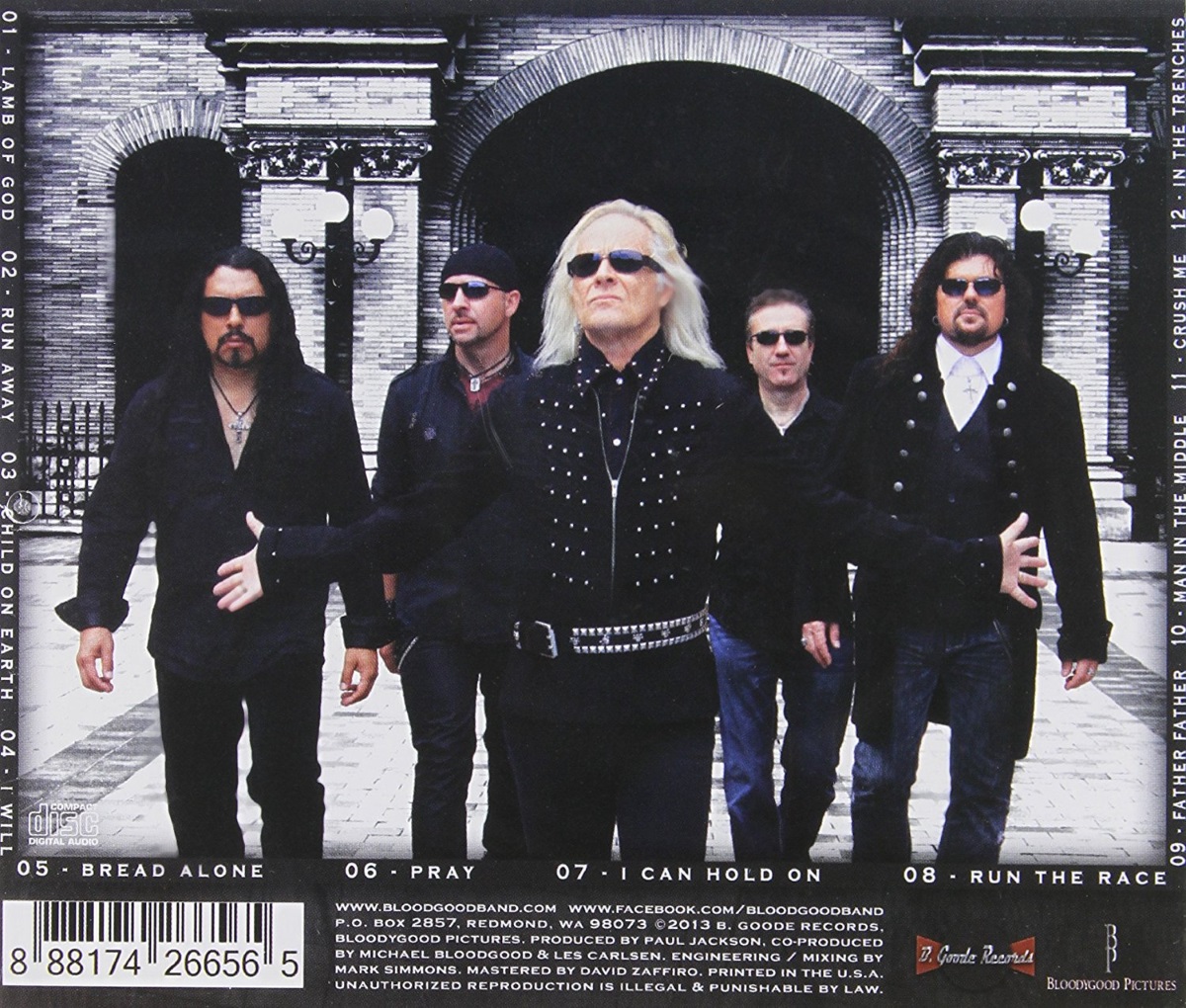 I’m old enough but I’ve never been a musical nostalgist, forever harking back to the music of my youth and telling everyone who’d listen that the music back then was from a golden age and that today’s music doesn’t compare. But then neither am I a musical snob who insists that music should be continuously evolving and that musicians who today insist in performing in styles which emerged in earlier eras are to be patronised or rubbished as musical museum keepers. So I hope I approached this, the first album in 22 years by ’80s metal heroes Bloodgood, with neither of those disturbing perspectives. I have to say that this is a superb album. The lineup of Les Carlson (vocals), Paul Jackson (guitars), Michael Bloodgood (bass) and Kevin Whisler (drums) with the addition of Stryper man Oz Fox makes for a richer, heavier sound than most of their old albums. The group deliver some aggressive guitar rhythms with bluesy slide guitar on «In The Trenches» while «Man In The Middle» has a bottom-heavy groove and some delicious guitar harmonies. Equally arresting is the double-kick drum power of «Bread Alone» while «Lamb Of God» with its biting riff and radio friendly hook has the potential to become a radio favourite – no mean feat for old school metal. Even the ballads work. «I Can Hold On» is lifted by the edgy rhythm guitars and I could even take the acoustic rock number. I’d say if anything, Les Carlson is a better singer today than he was back in the ’80s and with so many memorable songs punching home the overt spiritual messages I am left amazed that the Washington-based war horses have left it so long to deliver one of the best rock albums of recent times. [Tony Cummings, Cross Rhythms, January 2014]