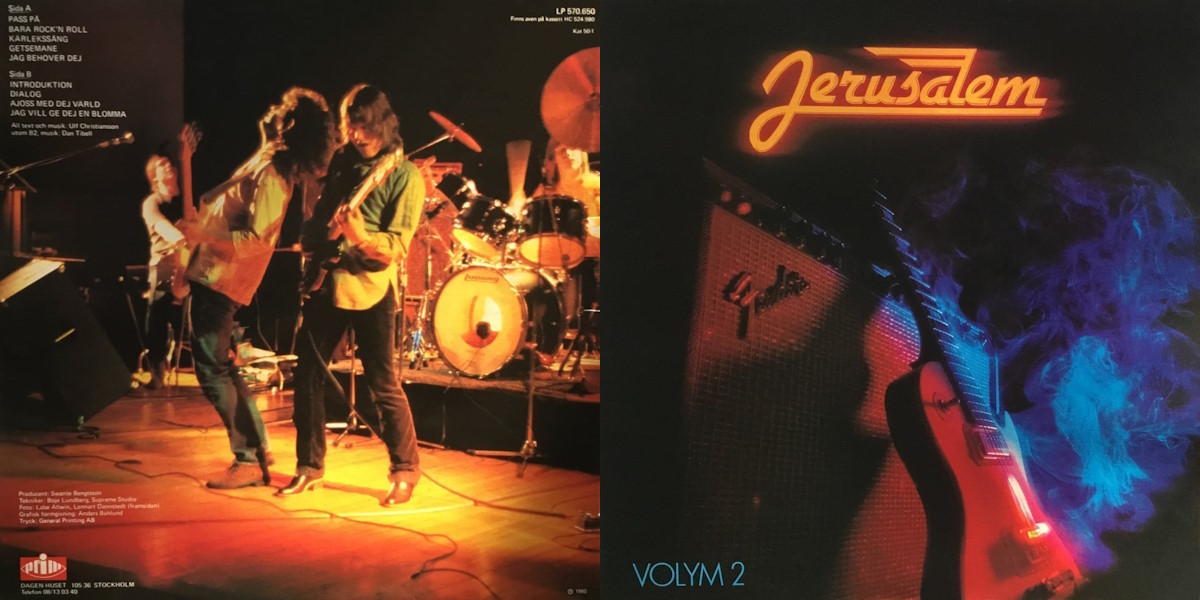 Volym 2 is the sophomore album by the Swedish hard rock band Jerusalem, released on the Swedish gospel label Prim in 1980. (An English version of the album, entitled Volmue 2, was released in the US on Lamb & Lion Records the same year, and as well on Myrrh Records in the UK.) The album was recorded by Boje Lundberg at Supreme Studio in Stockholm, Sweden; with Swante Bengtsson producing. All songs written by Ulf Christiansson except the music of “Dialogue”, written by keyboardist Dan Tibell. The album track “Jag vill ge dej en blomma” was later covered by Larm on their album Tala är guld released on Talking Music in 2020. Back in the day, Volym 2 sold 10,000 copies in Sweden alone during the first six months of its release.
