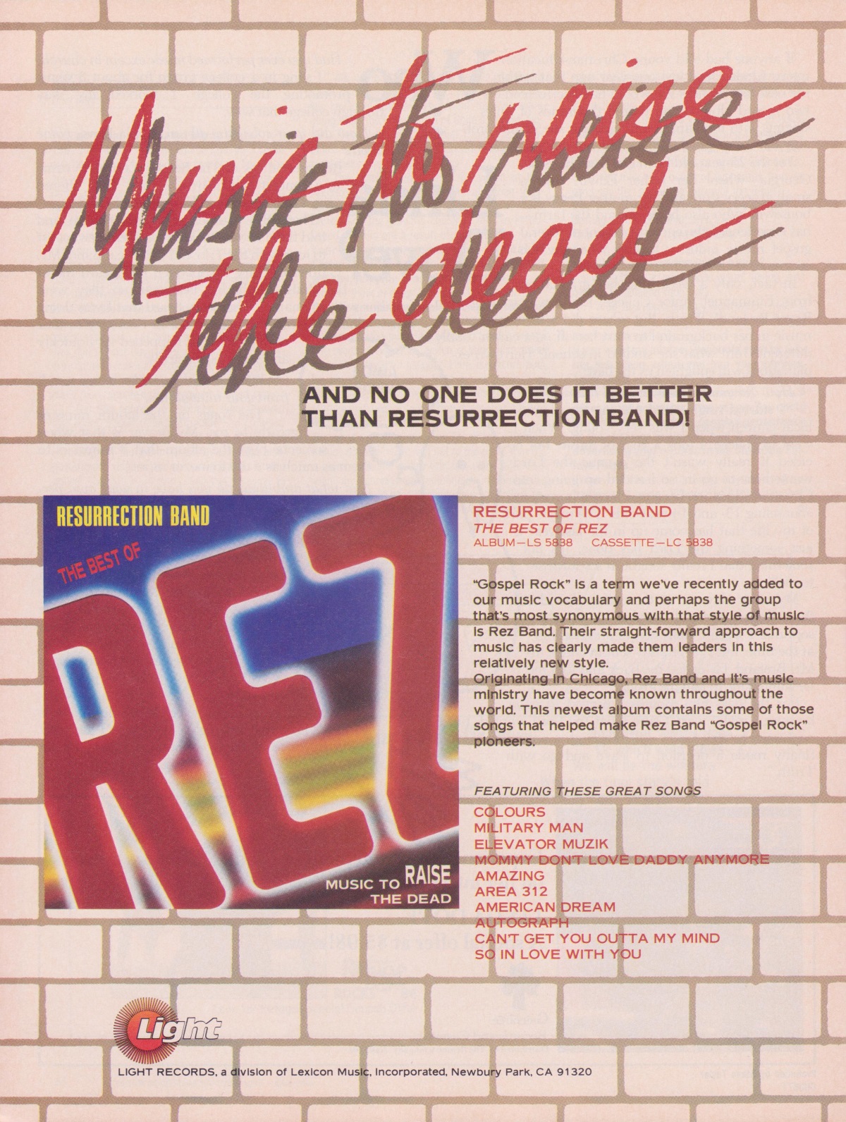 A full-page advertisement for the Resurrection Band compilation The Best of REZ was featured in the June 1984 issue of CCM Magazine.