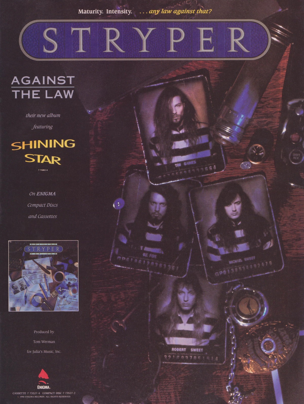 A full-page advertisement for Stryper’s Against The Law was featured in the October 1990 issue of CCM Magazine.