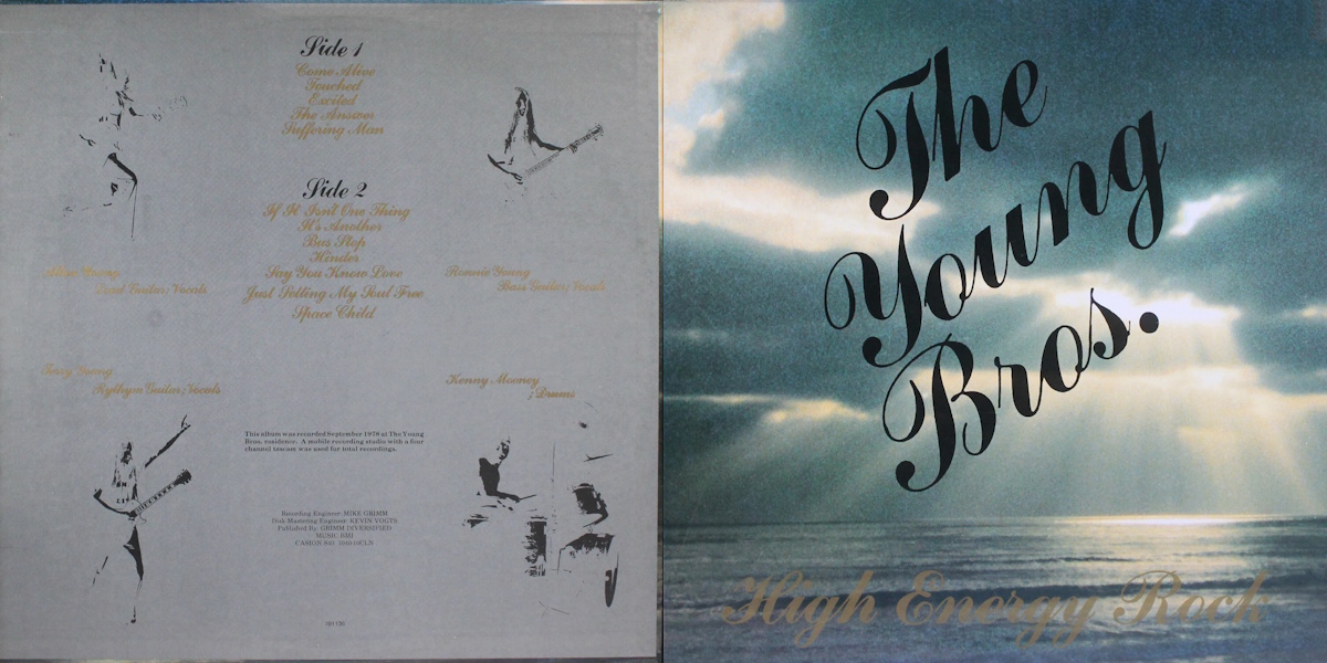High Energy Rock is the sole album by the American hard rock band The Young Brothers, released on GDS Records in 1978. “This album was recorded September 1978 at The Young Bros. residence. A mobile recording studio with a four channel Tascam was used for total recordings.” Recorded by Mike Grimm and mastered by Kevin Vogts.