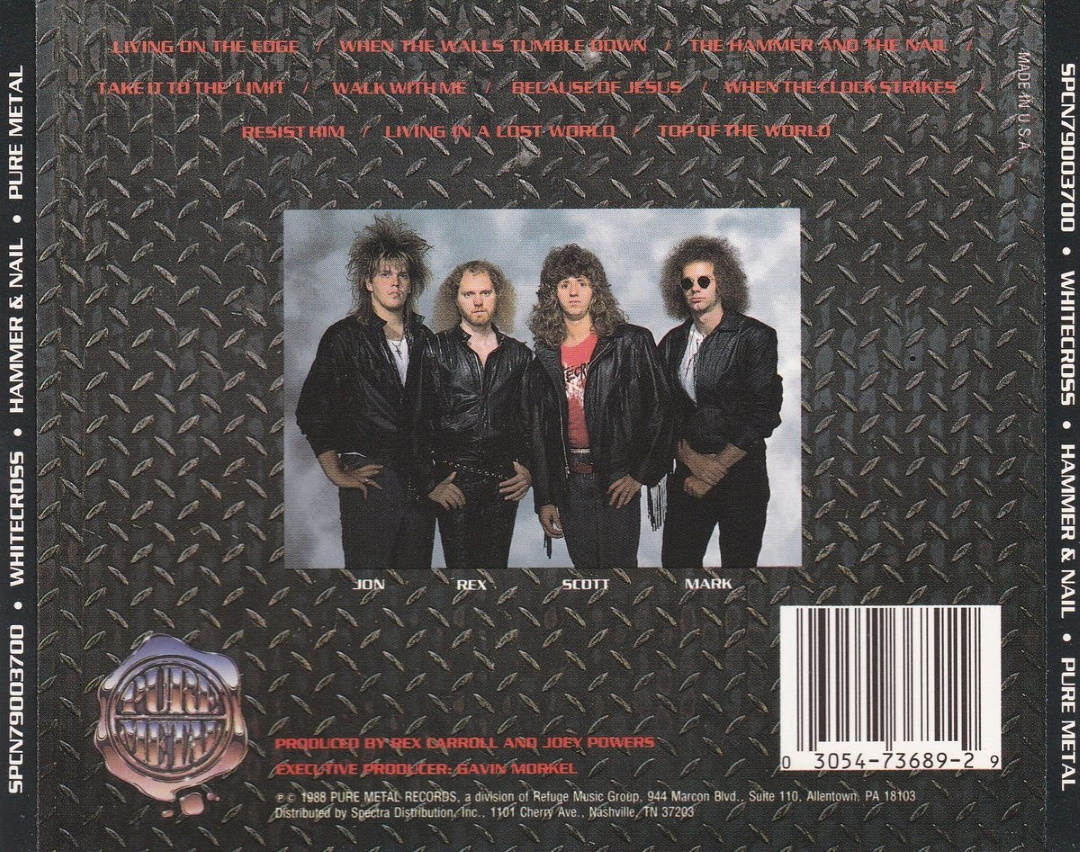 Whitecross - Hammer & Nail (Pure Metal Records 1988) CD back