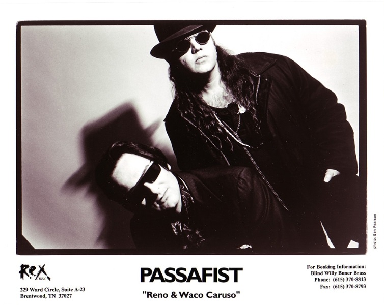 The break-up of the popular Nashville band Chagall Guevara sent the group’s very talented players scrambling for new projects. Vocalist Steve Taylor went back to the world of Christian rock and, later, as founder of Squint Records (where he discovered Sixpence None the Richer), to the executive suites. Guitarists Lynn Nichols and Dave Perkins forged careers as extraordinary sidemen and producers, working, most notably, with Taylor, Phil Keaggy, the Newsboys and Jerry Jeff Walker. Somewhere along the line, however, Perkins and Nichols (christening themselves Waco and Reno Caruso) found time to record this one-time collaboration with John Elliott of Dessau, and Michael Saleem and Mustafa Abdul-Aleem of Afrikan Dreamland. Although the band name itself is a play on words (pacifist, pass-a-fist — get it?), the music on this self-titled album is a muscular blending of the various members’ musical leanings. The “Caruso” twins (Perkins and Nichols) contribute guitar-driven, Rolling Stones-styled rock, Elliott brings Dessau’s industrial edge to the party, and Saleem and Abdul-Aleem add strong, almost tribal rhythms to the tracks. The music gels quite nicely despite the disparate influences of the collaborators, an aggressive mix of riffs and rhythm. The songs on Passafist are brimming with Perkins’ acerbic sense of humor and satirical wit. «Emmanuel Chant» is a hypnotic dirge with chaotic instrumentation, muted vocals, and sensual lyrics that reach a crescendo of religious frenzy. The revenge tale «Glock» is a powerful industrial-rocker with growling vocals, monster percussion, and fret work that sizzles with electricity. «Christ of the Nuclear Age» also offers an industrial vibe, although with more of an alternative rock edge, Nichols’ and Perkins’ guitars battling throughout the mix and alongside the vocals. The screaming guitars and funky undercurrent of «Appliance Alliance» evoke the spirit of Jimi Hendrix, while a cover of the Rolling Stones classic «Street Fighting Man» is beefed up with six-string steroids and an anarchic spirit. The epic, satirical «The Dr. Is In», subtitled «How I Learned to Worry and Start Missing the Cold War», takes its cue from the movie Dr. Strangelove. Starting with sampled vocals from the film, the song begins as a jazzy hybrid of instrumental virtuosity and Tom Waits-styled vocals before launching into a crucifixion of noise. A steady, rapid-fire heartbeat provides a soundtrack beneath scorched-earth guitars, industrial-strength vox, and samples from various news broadcasts. «The Dr. Is In» closes the album smoothly, reverting to its opening calm before a final nuclear blast drives the song’s not-so-subtle point home. Although created as an interesting side project for those involved, Passafist might have been a good 15 years or so ahead of its time. The band’s lyrical humor, loudly buzzing guitars, and strong rhythmic punctuation could easily have found a warm reception from the early-2000s nu-metal crowd. Instead, Passafist, the album, is a much sought-after collector’s item, a timeless relic of another era. [Keith A. Gordon, AMG]
