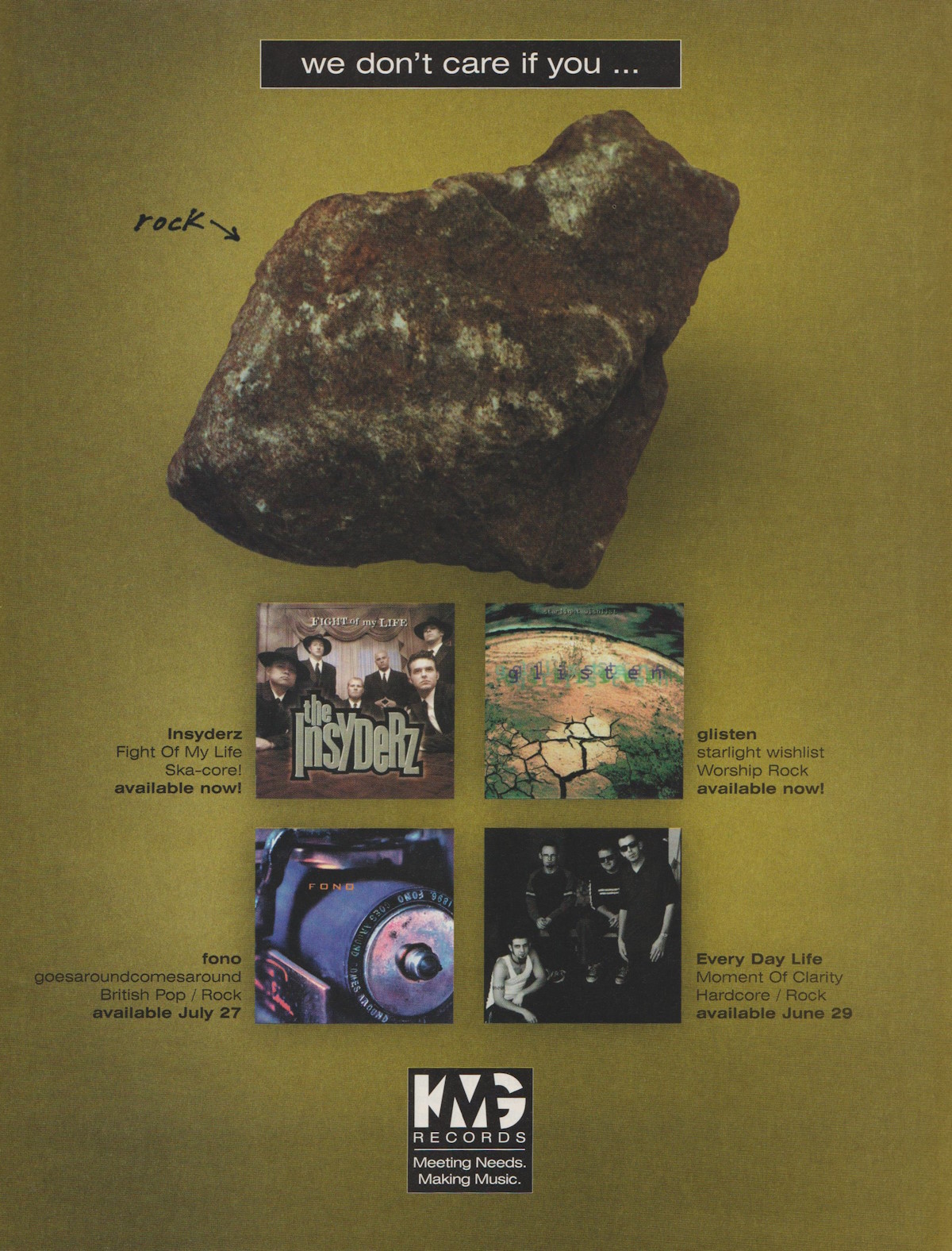 A full-page advertisement for various new releases on KMG Records, including EDL’s Moment of Clarity, was featured in the May 1999 issue of CCM Magazine.