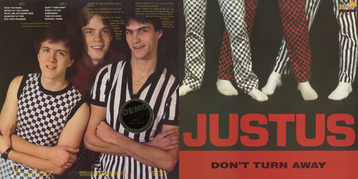 Don’t Turn Away is the debut album by the Canadian pop/rock band Justus, released on Tunesmith Records in 1984. The album was recorded and mixed by Brian Campbell at Blue Wave Studios in Vancouver, Canada; with Pahl Hackett with Campbell co-producing. All songs written by Donny Hackett. Justus is Donny Hackett, Rod Pahl, and Kevin Pahl.